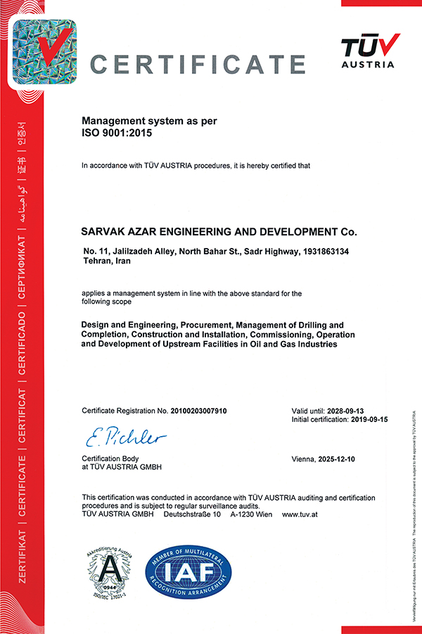 گواهینامه و افتخارات شرکت سروک آذر