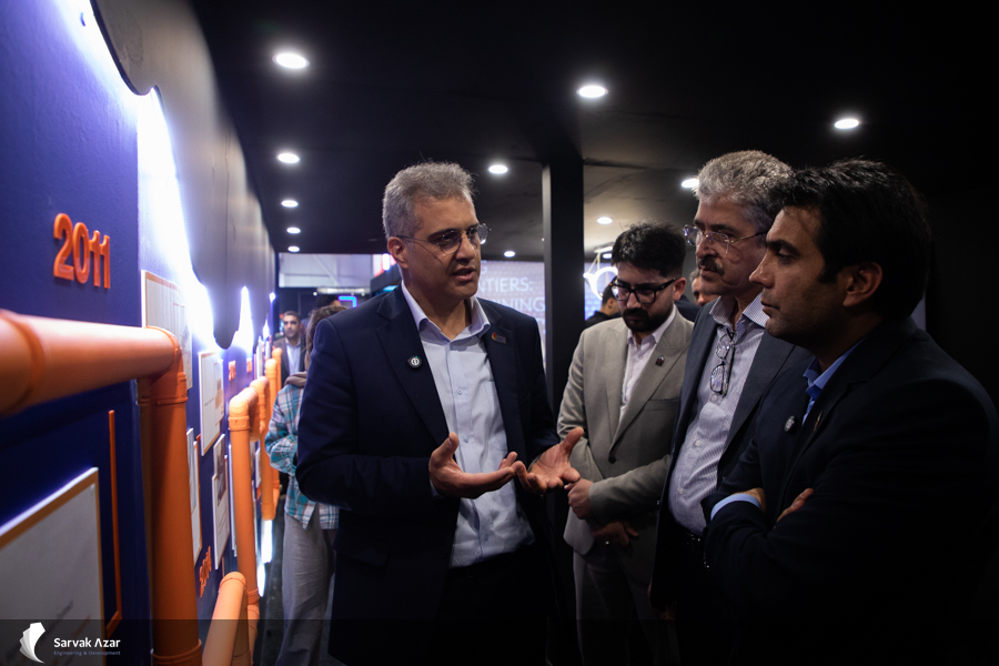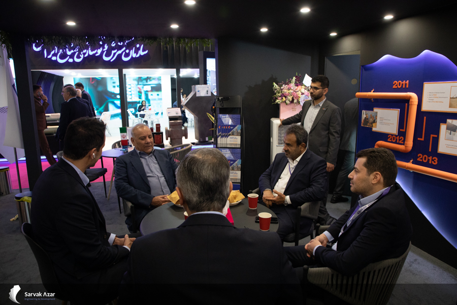 The booth of Sarvak Azar Engineering and Development Company (SARVAK AZAR) received many upstream oil executives from various sectors of the oil industry. In a section of the third day of the exhibition, Hamidreza Tavasoli, the CEO of SARVAK AZAR presented in detail the performance and achievements of the company in the Azar Oil Field project in phase one and explained SARVAK AZAR’s plans for success in the second phase of the Azar Oil Field development to the visiting managers and board members of the Oil Engineering and Development Company. Among the visitors on the third day of the 29th International Oil, Gas, Refining and Petrochemical Exhibition of Tehran were Taghi Ebrahimi, the head of assembly affairs and secretary of the board of directors of the National Iranian Oil Company, Ebrahim Mansournejad, the head of Oil Pension Funds, Dr. Abbas Razmi, HSE director of the National Iranian Oil Company.