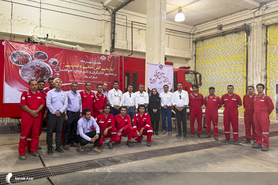 According to SARVAK AZAR’s public relations department, a special program was organized at the company to mark National Safety and Firefighter Day, as it is observed every year. The event was attended by senior managers from the main office and the site, SARVAK AZAR colleagues, and contractors at the Azar Oil site.